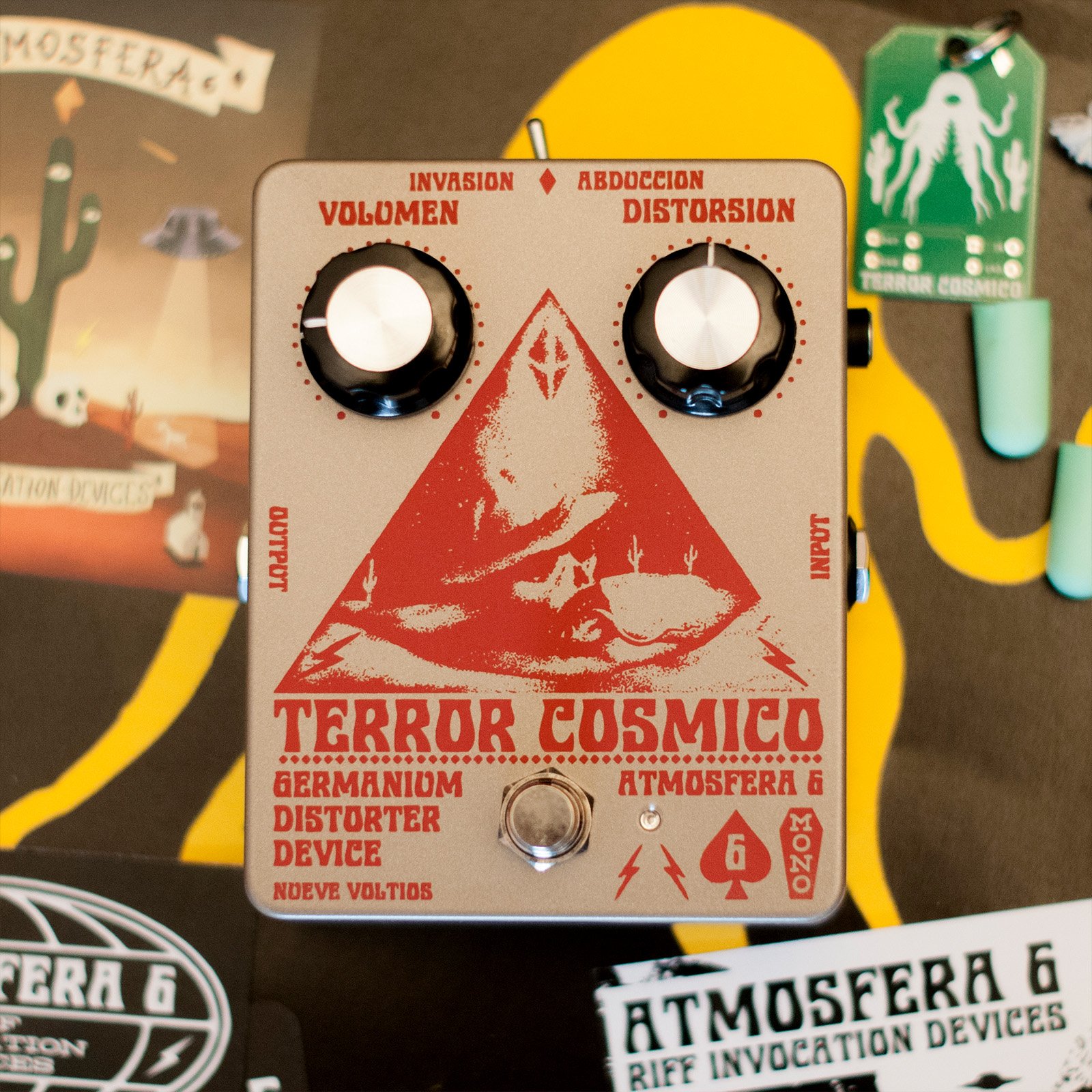 • INVASION / ABDUCCIÓN – Switch between the original TERROR COSMICO circuit and an alternate mode with different output capacitors for expanded tonal range.